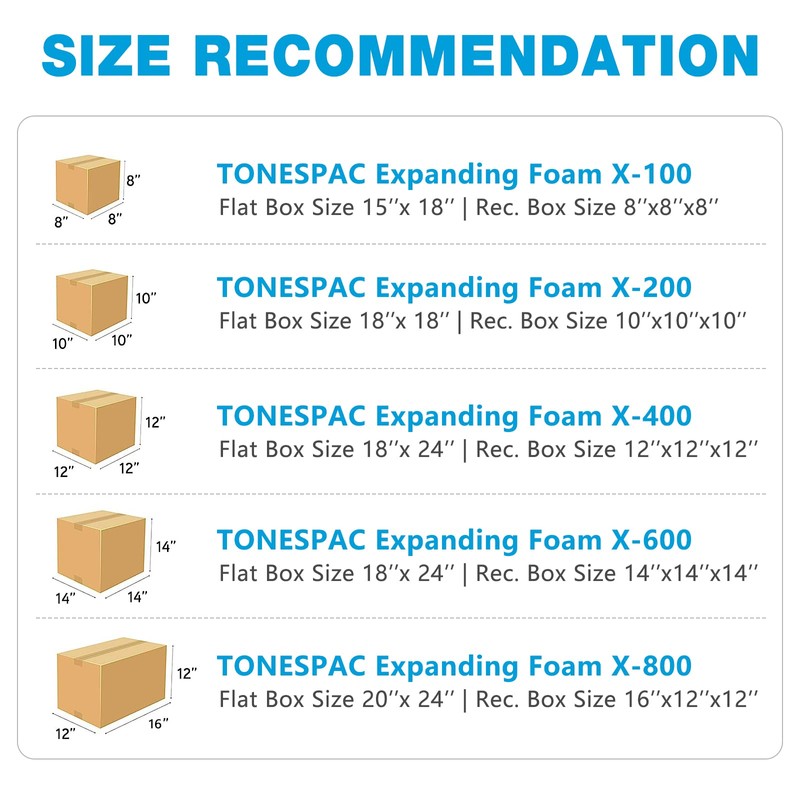 18” x 24” 8 PCS TONESPAC Instant Pack Quick Expanding Foam X-400 Packaging Bag for Packaging and Shipping