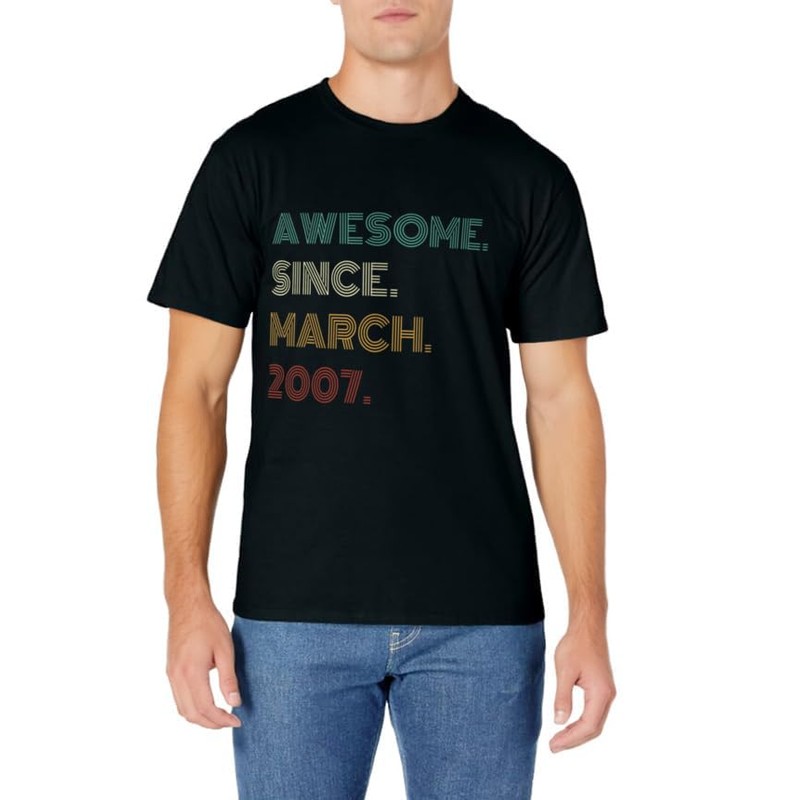 18 Years Old Awesome Since March 2007 18th Birthday T-Shirt