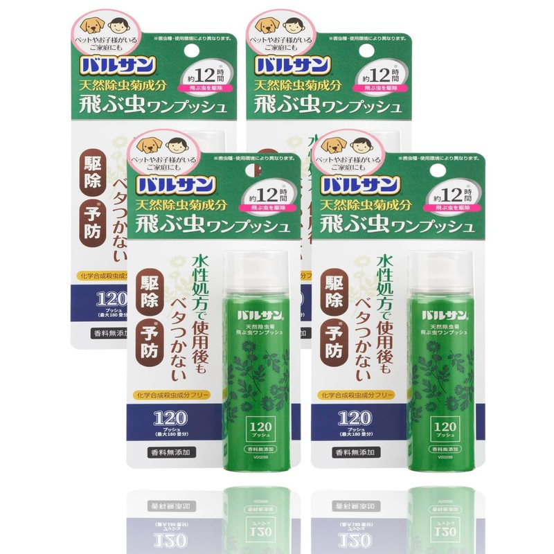 バルサン 天然除虫菊 ワンプッシュ 飛ぶ虫用 最大180畳分 化学合成殺虫成分不使用 ペット 子供にやさしい 水性処方 12時間効果 ベタつかない (4個 オリジナルおみくじカード付き)