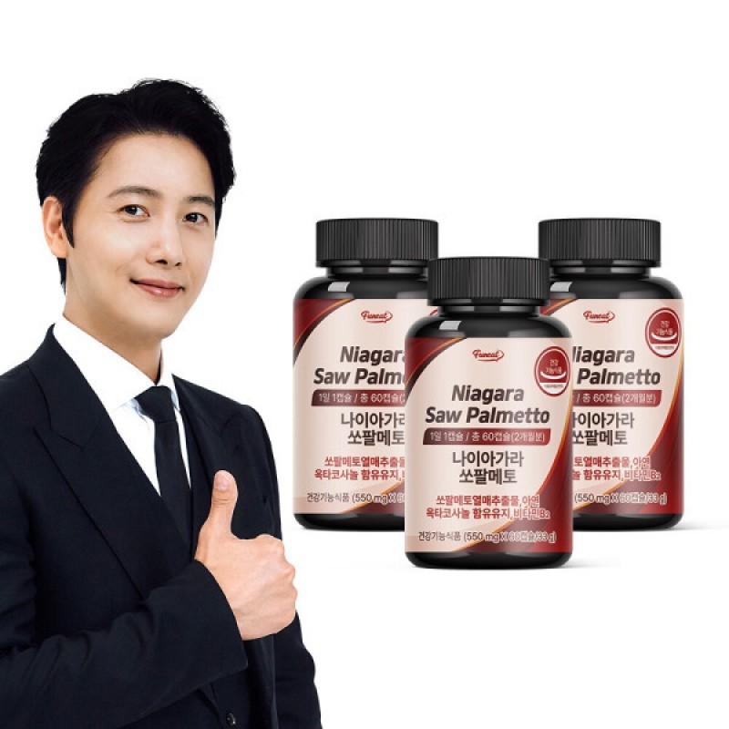 나이아가라 쏘팔메토 옥타코사놀 전립선 로르산 180캡슐 6개월분(총 3병) 비타민B2 마카 남성활력 지구력