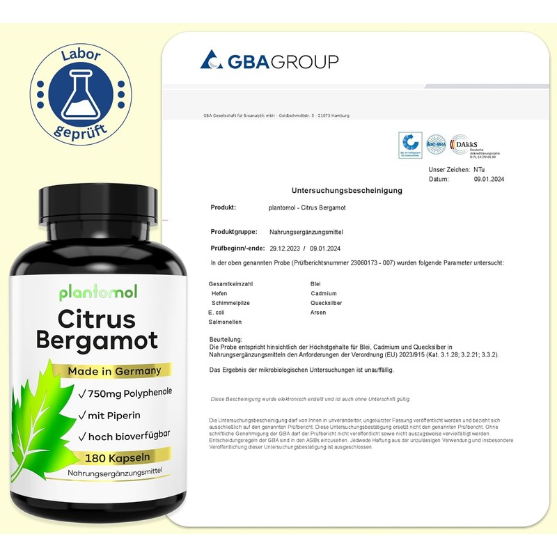 • 180 citrus bergamot capsules each with 750 mg citrus bergamot extract - of which 50% polyphenols. 1500 mg extract per daily dose including 750 mg polyphenol - 2 times higher doses than conventional citrus bergamot capsules