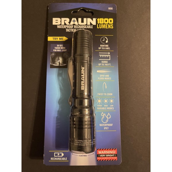 - Easy access on/off button. Three variable light modes: low, high, and turbo
