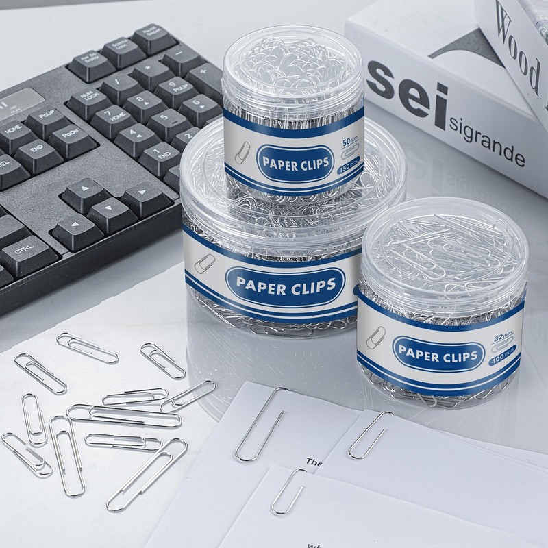 - 1800 Assort Sizes Paper Clips - 1800 pcs silver paper clips assorted sizes contains 150 pieces 50mm, 400 pieces 33mm, and 1250 pieces 28mm paper clips
