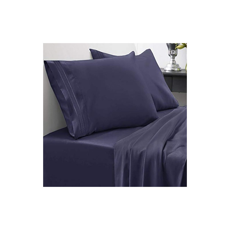 1800 Thread Count Sheet Set â Soft Egyptian Quality Brushed Microfiber Hypoallergenic Sheets â Luxury Bedding Set with Flat Sheet, Fitted Sheet, 2 Pillow Cases, Queen, Navy