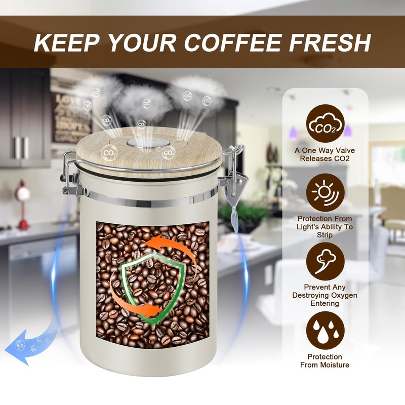 - ☕Versatile Freshness Keeper: The thoughtfully designed ROCKY&CHAO coffee canister offers an impressive 1800ml (22.8OZ) capacity, this coffee canister not only preserves the freshness of your coffee beans but is also perfect for keeping the fresh of ground coffee, tea leaves, nuts, grains, candies, and various other foods. It's multi-functional design ensures that a wide range of pantry staples can be stored effectively, keeping them fresh and flavorful for longer.