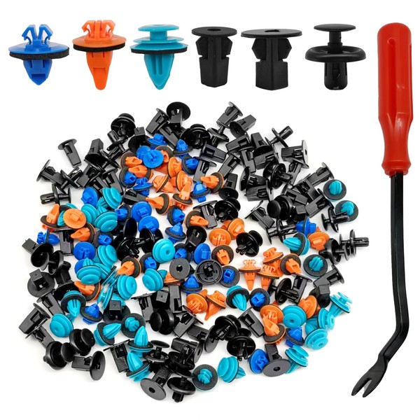 - PACKAGE INCLUDED: Orange and Blue fender flare clips × 30, bumper fender liner retainer fastener × 30, Door Trim Panel Retainer Clips × 30, Splash Shield Clips × 30, Fastener Remover × 1.