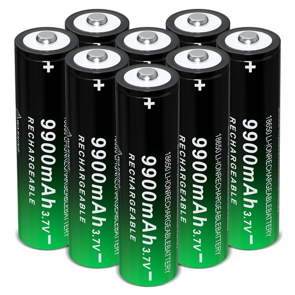 18650 Rechargeable Battery 3.7Volt Lithium Batteries 9900mAh Button Top 8 Pack 18650 Battery for Flashlight Headlamp
