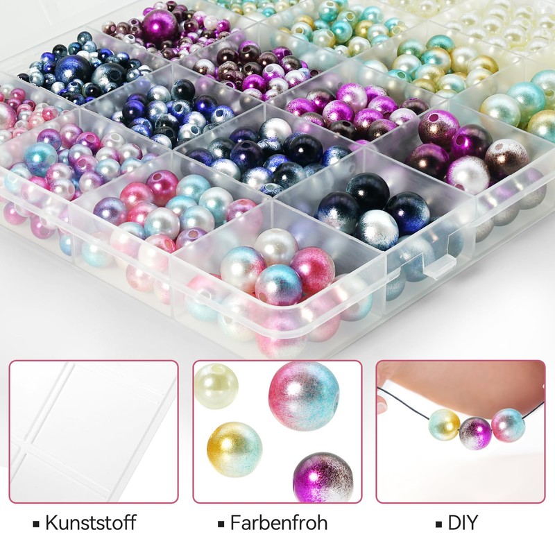 1890 Pieces Craft Pearl for Threading Colourful Beads, Beads for Crafts, Bead Set, Craft Beads, Craft Pearls for DIY Bracelets, Necklaces, Earrings, Jewellery Making, Clothing, Decorating
