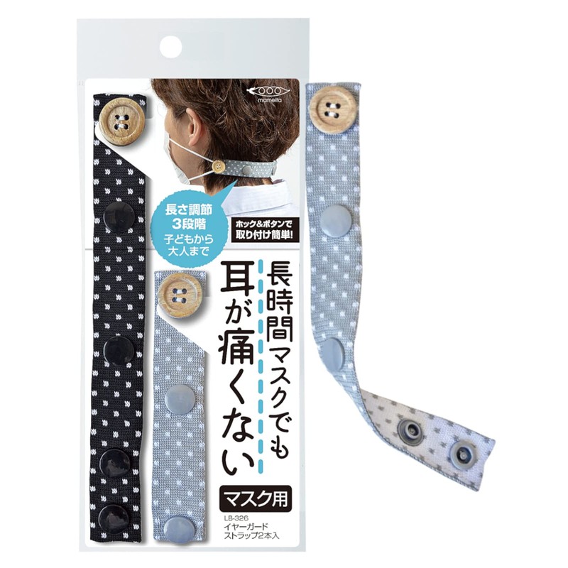 マメイタ マスクストラップ ブラック グレー 縦18cm×横2.2cm×厚み0.5cm マスク 首にかける イヤーガード 長さ調整可能 洗える 2本入 LB-326