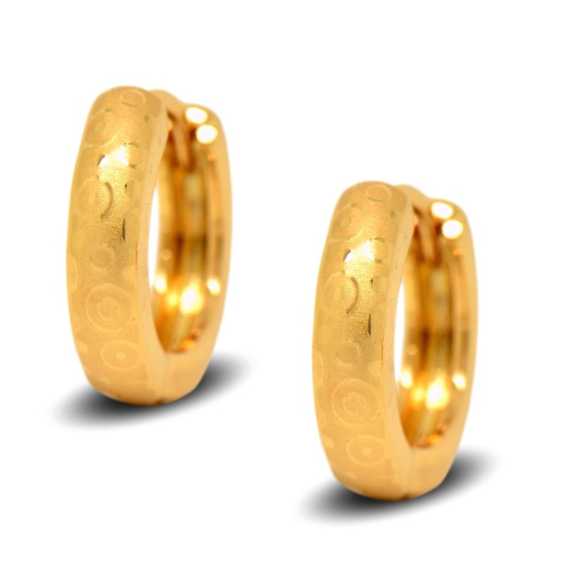 18ct Gold Filled Womens Snap Hoop Earrings with Pattern