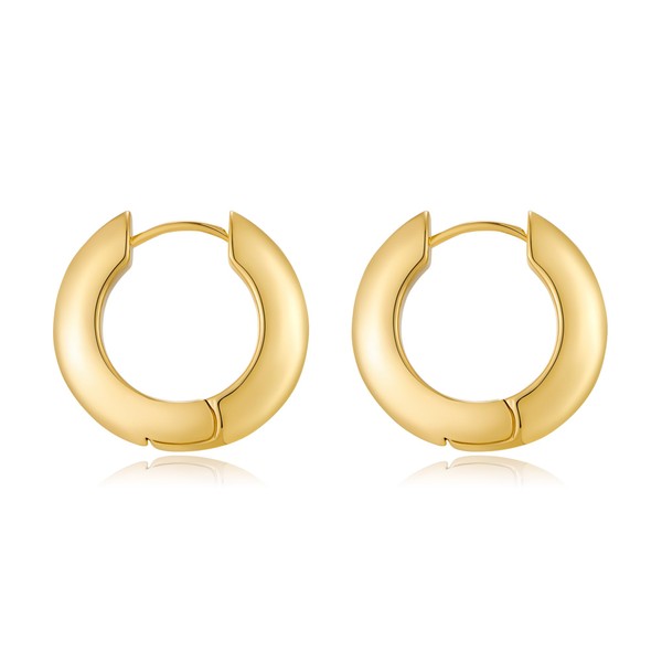 18K Gold Plated Chunky Huggie Earrings Sleep Safety Small Hoop Earrings,Circular