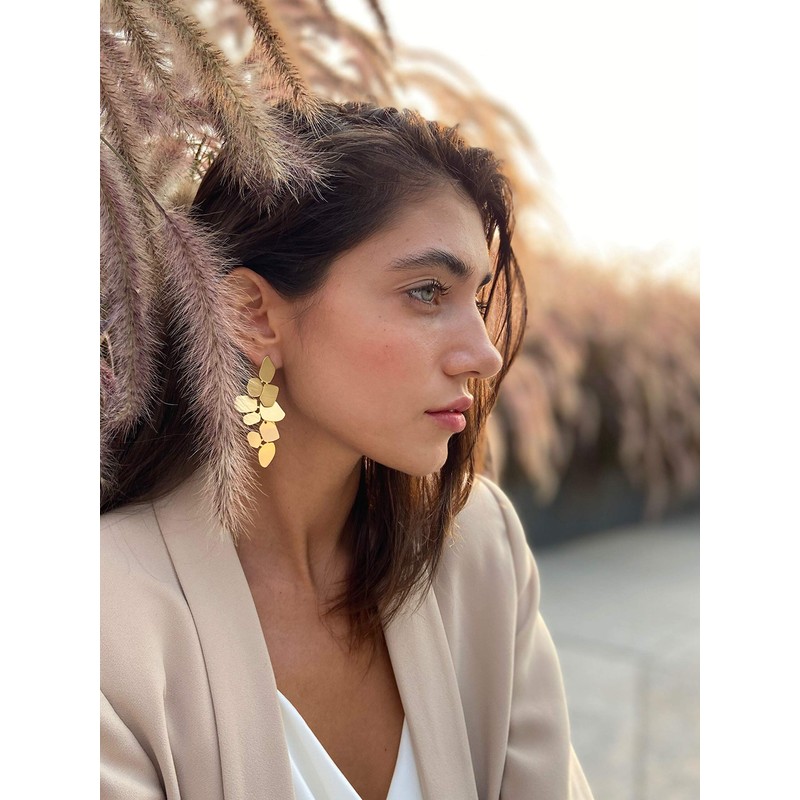 18k Gold Plated Irregular Geometric Shaped Earrings 3 Adjustable Length Boho Chic Statement Brass Jewelry