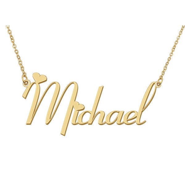 18k Gold Plated Michael Heart Name Pendant Charm Necklace for Womens Birthday Graduation Stainless Steel Jewelry