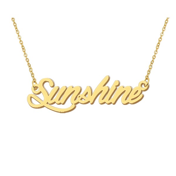 - Sunshine Pendant Name Necklace 18k Gold Plated Stainless Steel Hypoallergenic, Polished and No Tarnish