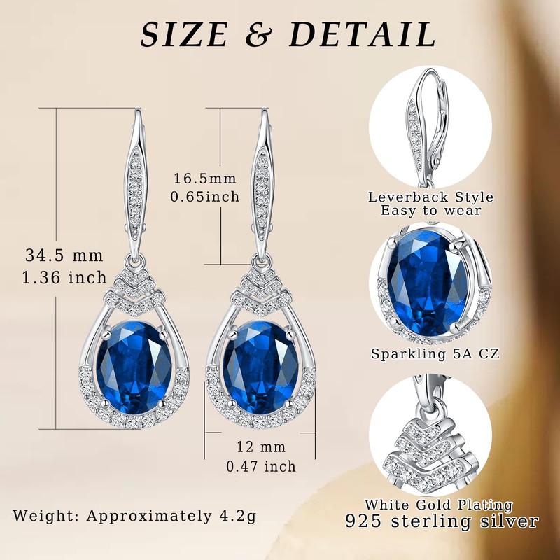 - 【Perfect Size】: BIRTHSTONE EARRINGS Size is 12 * 35 mm (0.47 * 1.38 inch). the middle Oval Cut Stone Size: 8m*10mm (0.3*0.4 inch). It's lightweight and comfortable to wear.