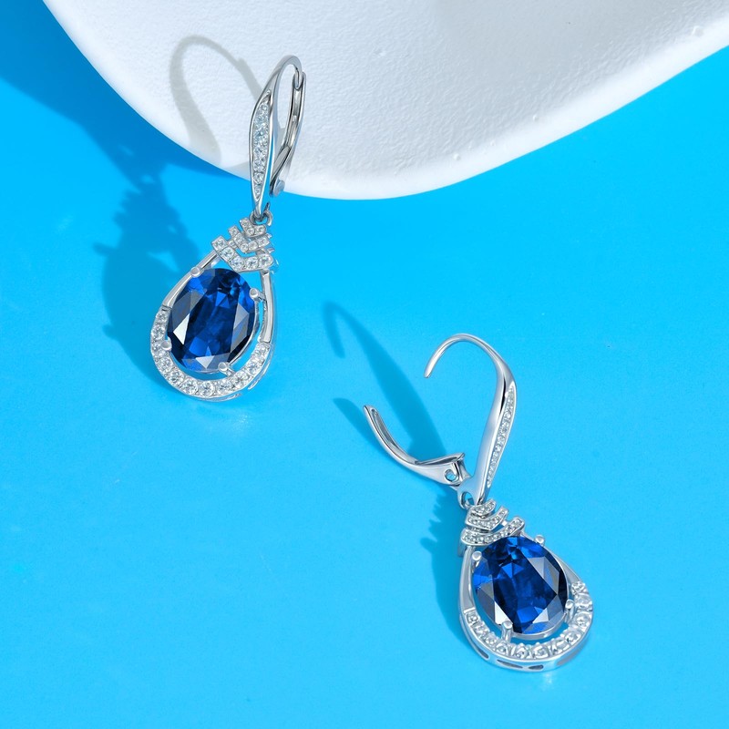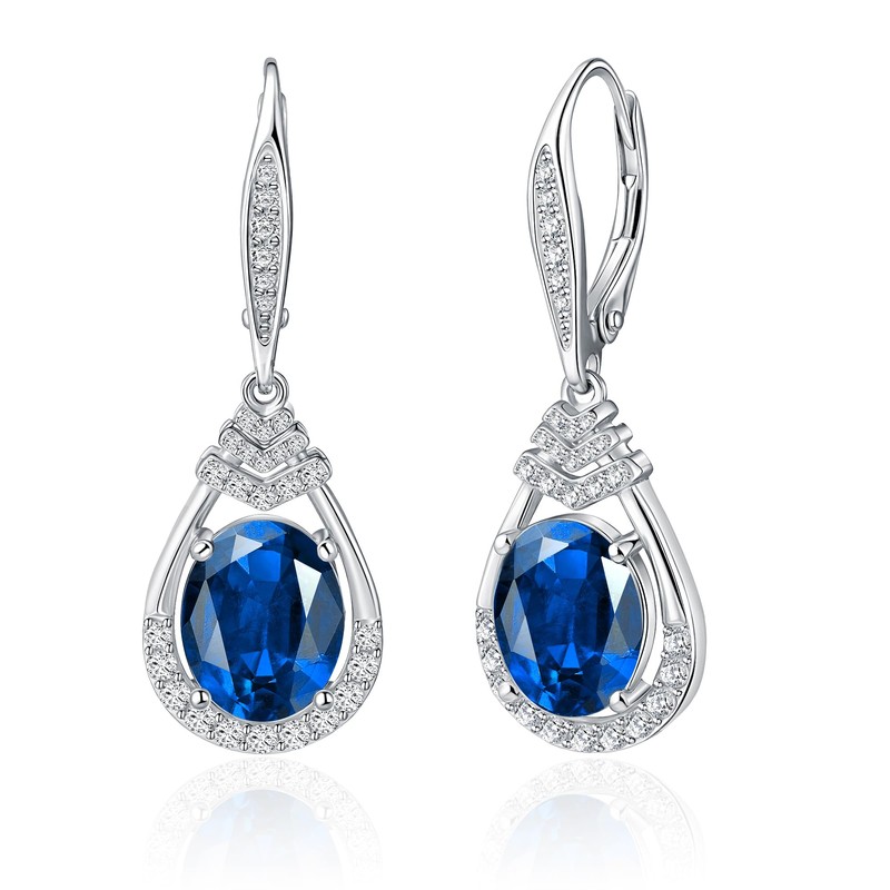 18K White Gold Plated Sterling Silver Dainty Teardrop Leverback Earrings for Women Hypoallergenic Timeless September Birthstone Drop Earrings Sapphire Jewelry Oval Cut Cubic Zirconia Dangle Earrings