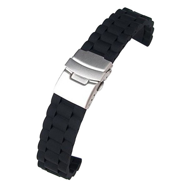 This silicone watch band strap is crafted with a quick release mechanism and safety catch and silicone band and deployment clasp. It looks elegant and it adds an attractive taste of wit and maturity.