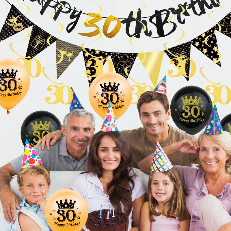 - 【black and gold party Decoration】: Using the ribbon to hang"HAPPYBIRTHDAY" balloons banner on wall, window, ceiling or in courtyard, it is very easy to decorate the party. The balloons are perfect for birthday party decorations, you can stick the balloons to the wall or string them as banner and hang up to create a unique party scene or backdrop. TIP: Colourful confetti will stick to the balloons by rubbing them with your clothes or hair before inflation.
