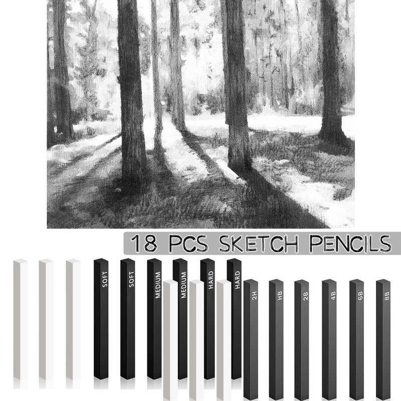 - ✏️Size and Packaging: The size of the sketch graphite pencil is 0.4x0.4x3.1 inch. The graphite pen set includes 6 pieces per single box, a total of 18 pieces, the quantity of compressed charcoal set fully meets the daily use and consumption of each population