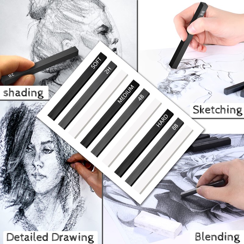- ✏️Non-Toxic Graphite Material: compressed charcoal pencils and white charcoal pencils for artistsis made of high-density graphite material, charcoal drawing sticks non-toxic and healthy, charcoal sketch full carbon, drawing charcoal with smooth surface without impurities, compressed charcoal sticks with square design, artist charcoal eye-catching, compressed charcoal for artists exquisite and advanced, artistic shadow pencils can meet daily use, the charcoal pencil set with non-toxic materials can be used with confidence