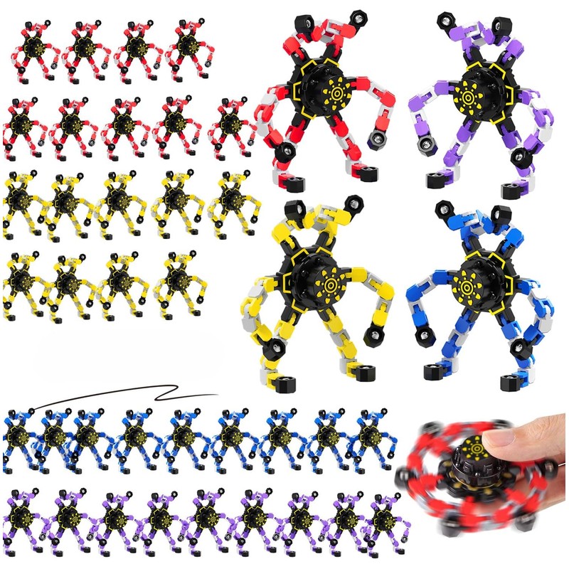 - Transformable Finger Gyros: Each fidget spinner features six deformable chains, allowing you to create various shapes such as spinners, robots, and even phone holders. This not only provides fun but also enhances kids' hands-on ability, hand-eye coordination, and logical thinking skills.