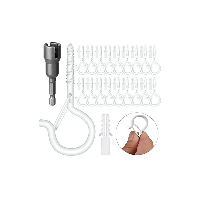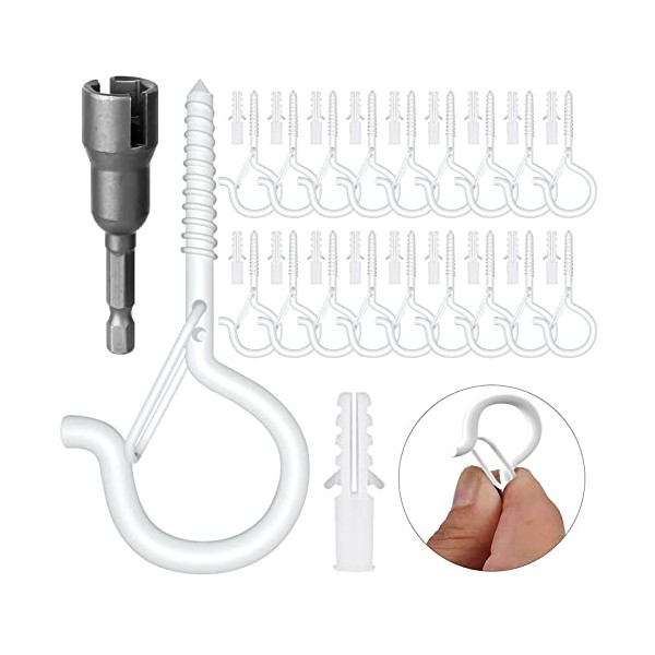 18PCS Q-Hanger, Screw Hooks for Outdoor String Lights - Ceiling Hooks for Hanging Plants Wind Chimes, Safety Buckle Design, Windproof, 2.2 Inches