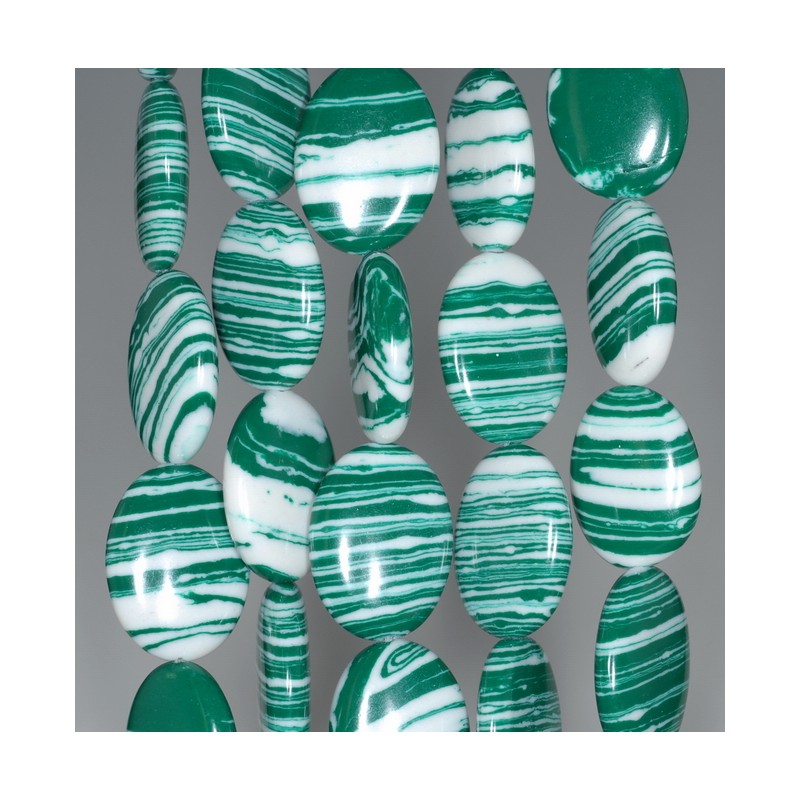 18X13MM GREEN WHITE MATRIX TURQUOISE GEMSTONE OVAL LOOSE BEADS 15.5"