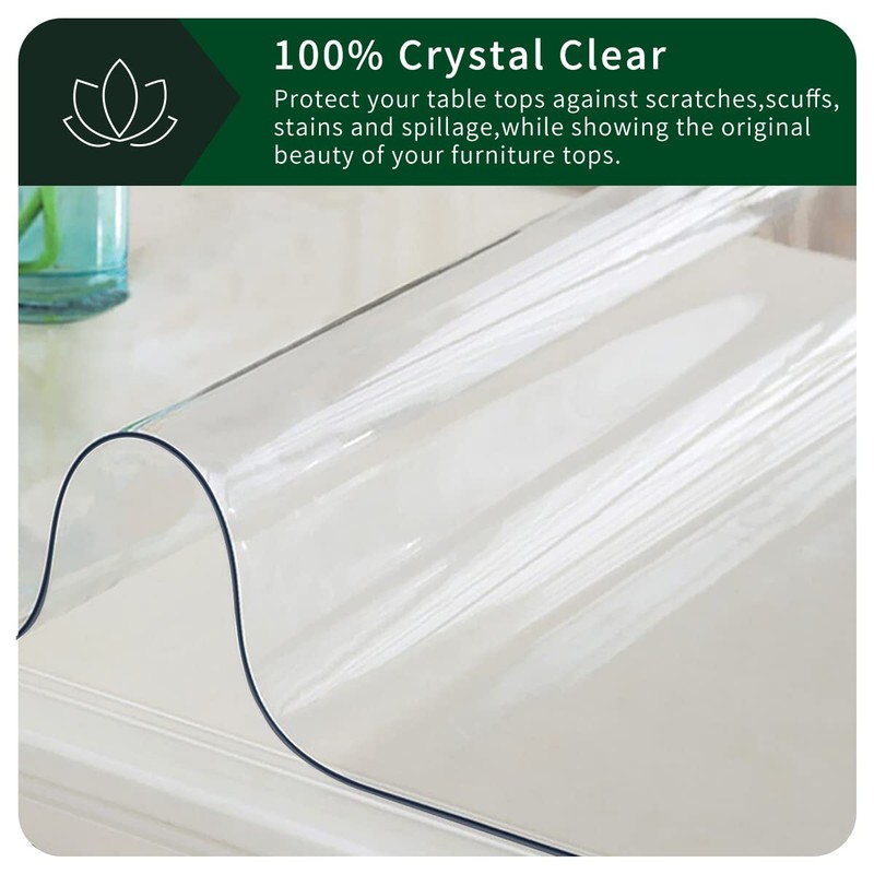 The multi size thicken eco-friendly bpa free plastic materials clear vinyl table cover protector,pvc glass table protector,clear table protector cover mat,crystal plastic desk top protector pad protects your wedding/office writing desk,painting tabletop,dressing cabinet,camping outside,dining room,living room table,TV bench top,bedside/yard/Meeting desk,cocktail/bar table surface top screen protection.pet feeding mat,party/metal/card table protector,carnival table protector cover mat,chair floor pad is enabled to display your coffee,picnic,Night stand, shelves,cooktop,garden,sofa,rubber,laptop,Computer table,wood furniture, kitchen countertop,glass/granite/metal/stainless steel/marble top surface protection and expensive furniture's beauty and elegance,Look attractive and enjoy your life.