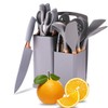 19 in 1 Kitchen Utensils and Knife Set with Storage, Include 11 Piece Silicone Cooking Utensils 5 Pcs Sharp Stainless Steel Chef Knives Scissors Whisk Tongs and Cutting Board GrEY