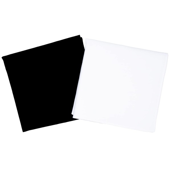 [19 inch] Handkerchief, Black, White, Ceremonial Occasions, Funerals, Weddings, Made in Japan, Set of 2, 100% Cotton, Simple, Formal, Evening, Farewell Ceremony, Exam, Unisex (Set of 2, White / Black)
