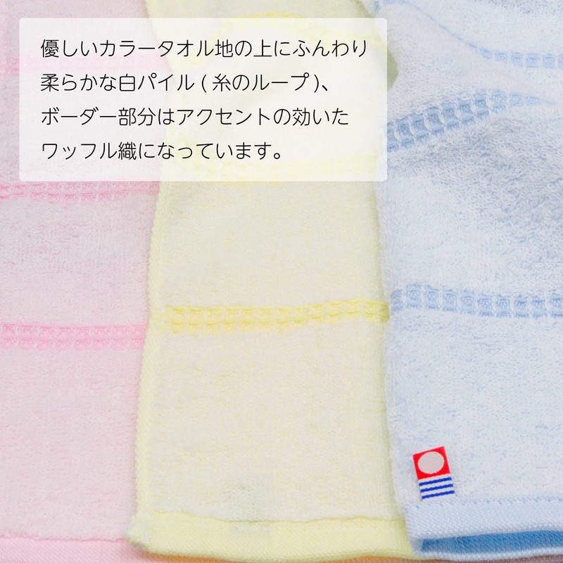 The soft and soft white pile (loop of thread) is affixed to a gentle terry cloth and the border is made of waffle weave with accents for a stylish interior towel. Beautiful Imabari White.