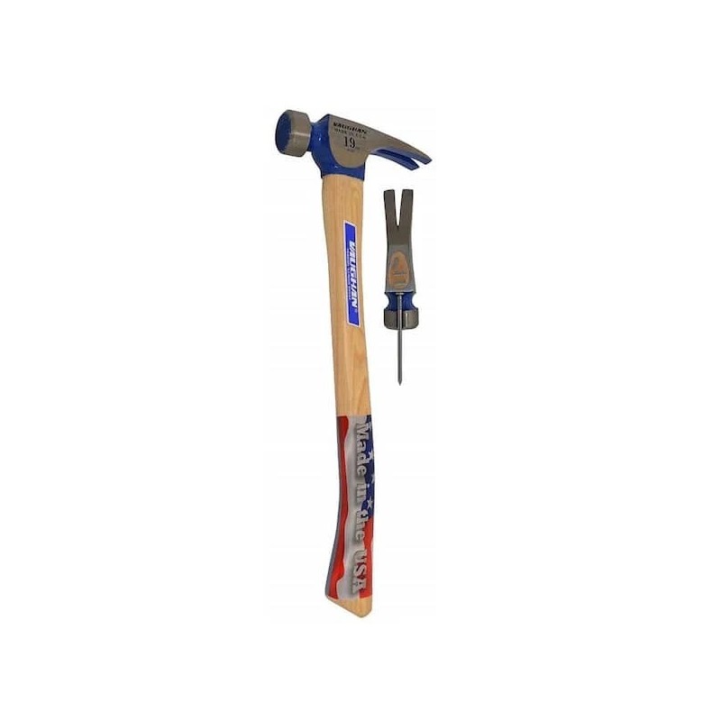 The Vaughan 19 oz. California Framer Framing Hammer with Curved Handle is designed to work well on any framing job. It features a smooth-claw design that is borrowed from standard rip hammers and its large striking face, hatchet eye and curved handle are based on a rig builder's hatchet. The handle is made with high-quality, second-growth hardwood and has a large cross section where it joins the head.