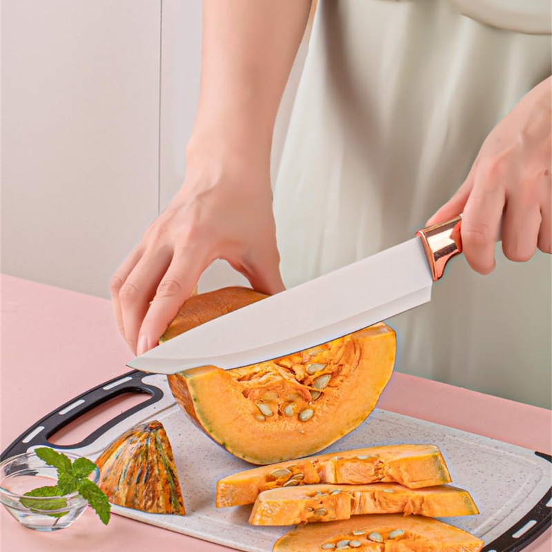 8” Chef Knife----It can be used for your daily kitchen tasks, chopping, slicing, dicing, and chopping all kinds of meat, vegetables, fruits, and bread, it is suitable for all kitchens.