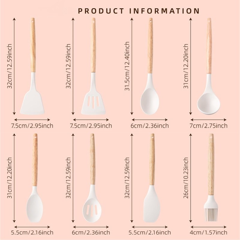 - QUALITY MATERIALS :The cooking utensils set is made of highly durable silicone. The cooking utensils can withstand temperatures up to 480℉. Anti-scalding silicone handle protects your hand from burning. Safety non-stick cookware.