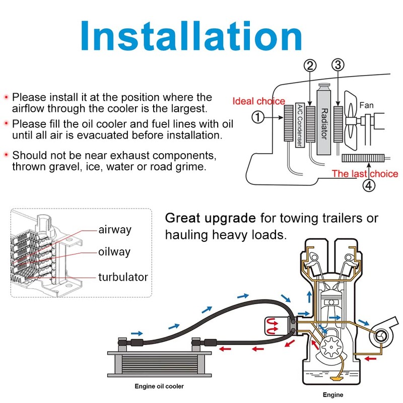 - [Which size to choose] This is a universal oil cooler kit. Just measure the size of the space before buying to ensure that it can be installed, and then you can choose the right size according to your cooling efficiency needs.