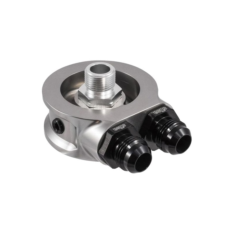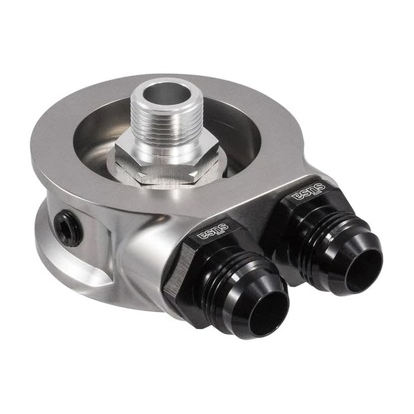 The sūsa HyperFlow Billet Sandwich Oil Filter Adapter provides easy access to the oil supply for installing Setrab ProLine Oil Coolers. Engineered for performance, reliability, and integration with the sūsa ProLine M22 adapter fitting system, the sandwich oil filter adapter is machined from billet aluminum with generous positive flow characteristics. Designed to direct oil through the oil cooler at all times, it is particularly suited to dedicated racing vehicles. Includes 1/8"-27 NPT port and plug for optional installation of sending unit accessory gauge, e.g., sūsa Thermal Switch (thermal switches sold separately). Sandwich oil filter adapters install between oil filter and oil filter landing for simple access of oil supply to install an oil cooler. For use with sūsa ProLine fittings and hose ends up to -12 size.