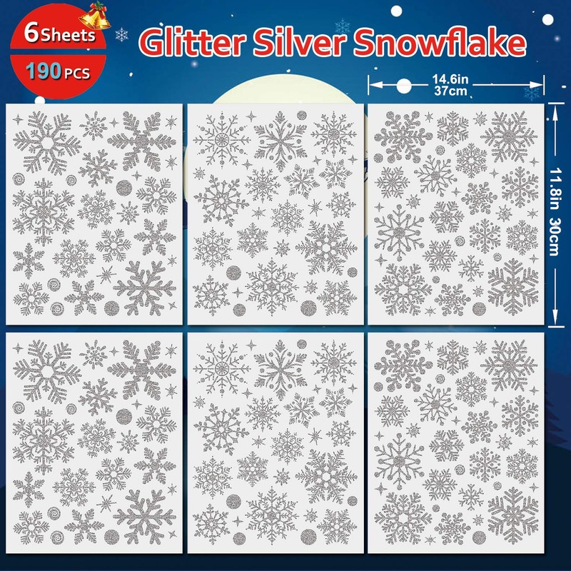 - Various Snowflake Patterns - 6 sheets Christmas window decals stikcers, 190 pcs decals in total include various styles and various sizes. It’s ideal for Christmas decorations, especially in the bathroom, home, shop or office.