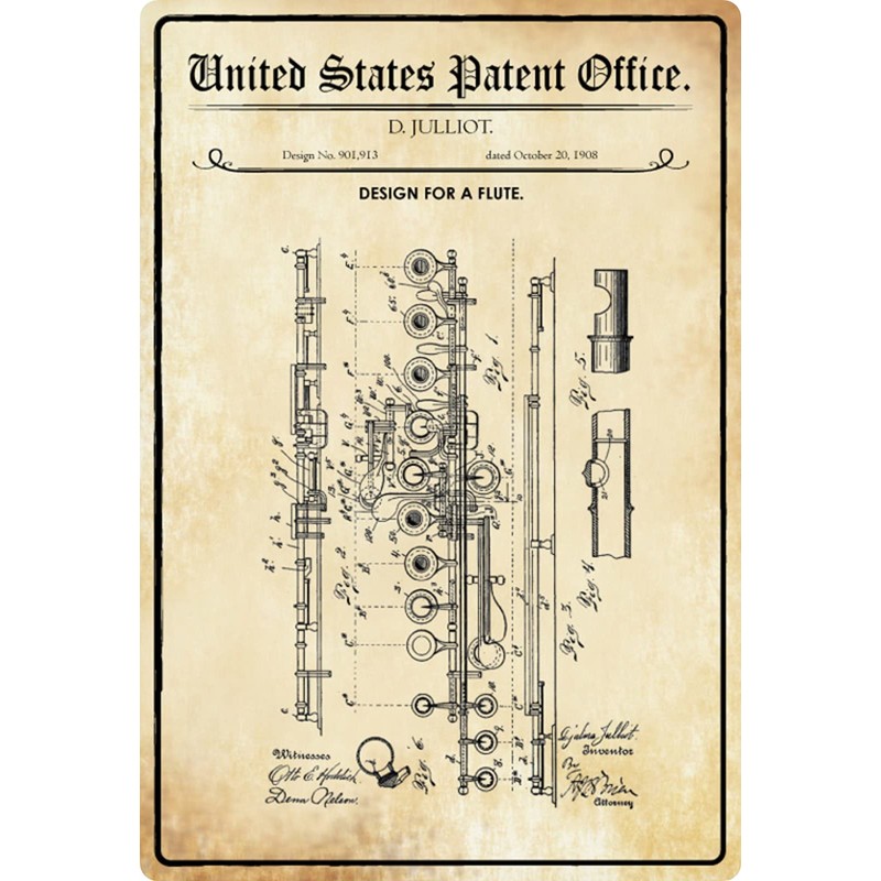 1908 Tin Sign with Patent Design for a Flute Design 20 x 30 cm