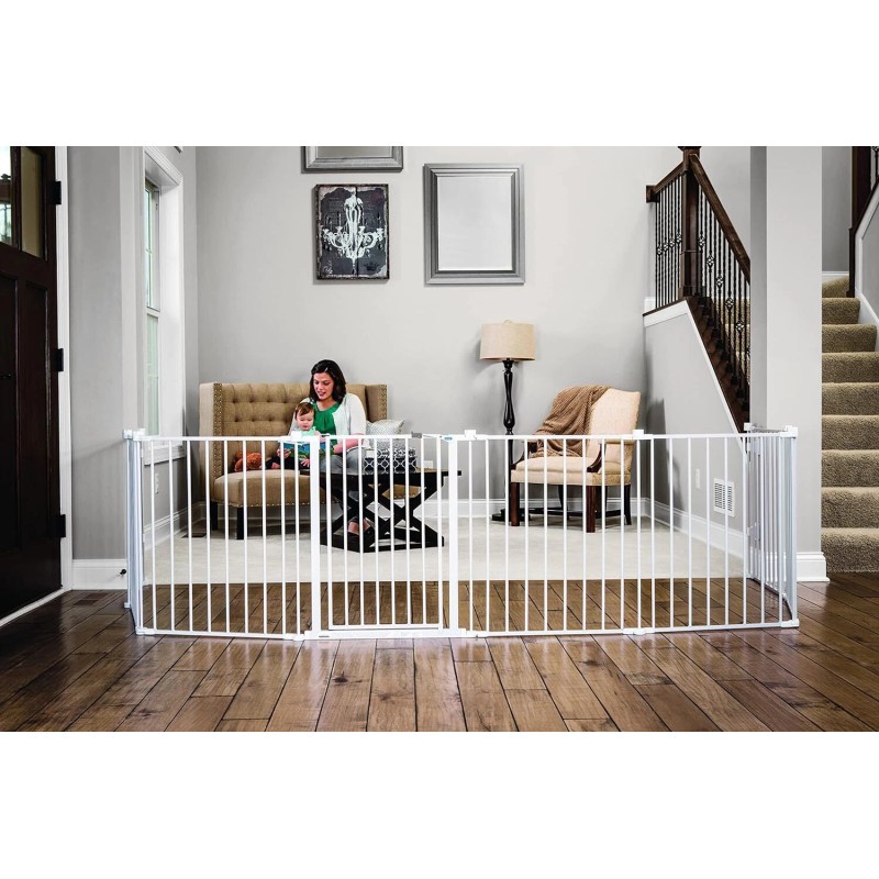 2-IN-1: Can convert from a super-wide gate to an 8-panel play yard. No tools require, quick and easy. Includes 4 pack of wall mounts