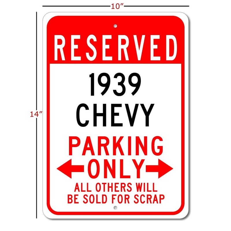 1939 39 Chevy Reserved Parking Only All Others Will Be Sold For Scrap, Metal Parking Sign, Man Cave Wall Decor, Novelty Garage Sign - 10"x14"
