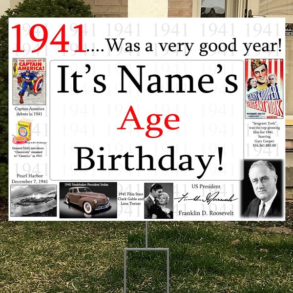 - The perfect birthday yard sign designed for those born in 1941 celebrating their 83rd birthday in the year 2024