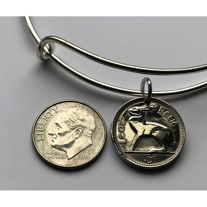 1953 Ireland Éire 3 Pence coin bangle bracelet Irish rabbit bunny hare Gaelic harp cláirseach Dublin Cork Limerick Galway Waterford Ulster Carlow Hibernia Celtic harp Saint Patrick's Day Gaels b000017