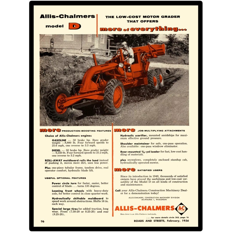1956 Allis Chalmers Construction New Metal Sign: Model D Motor Grader Featured