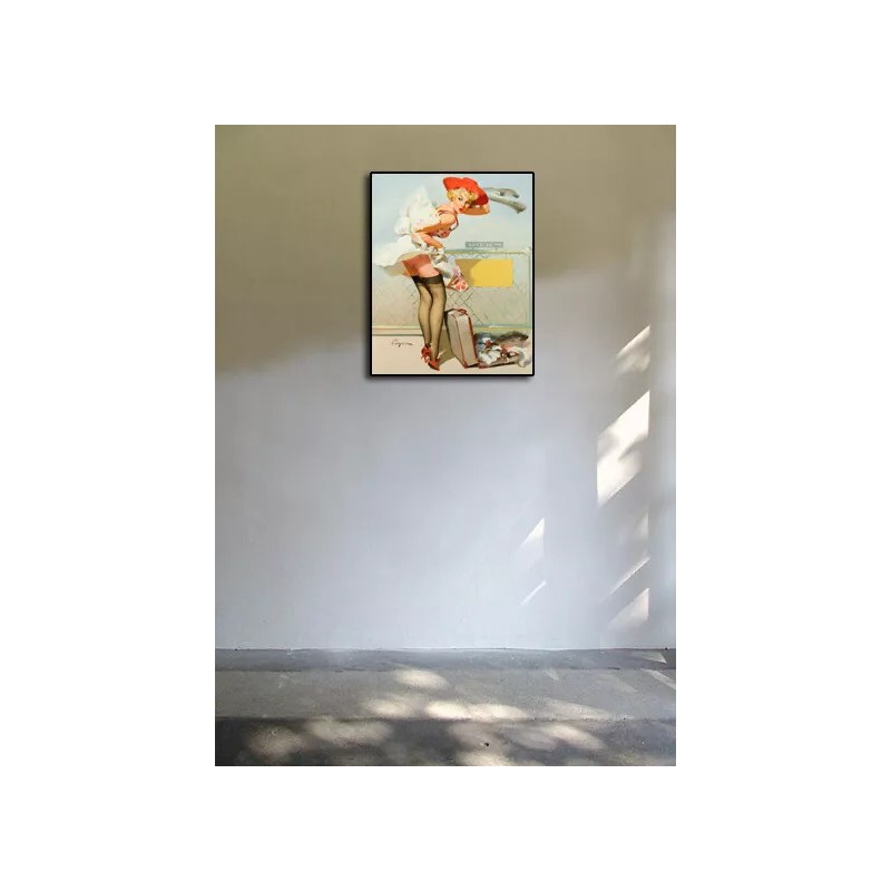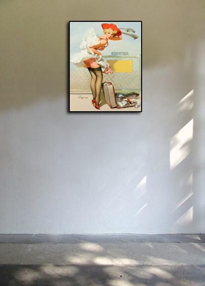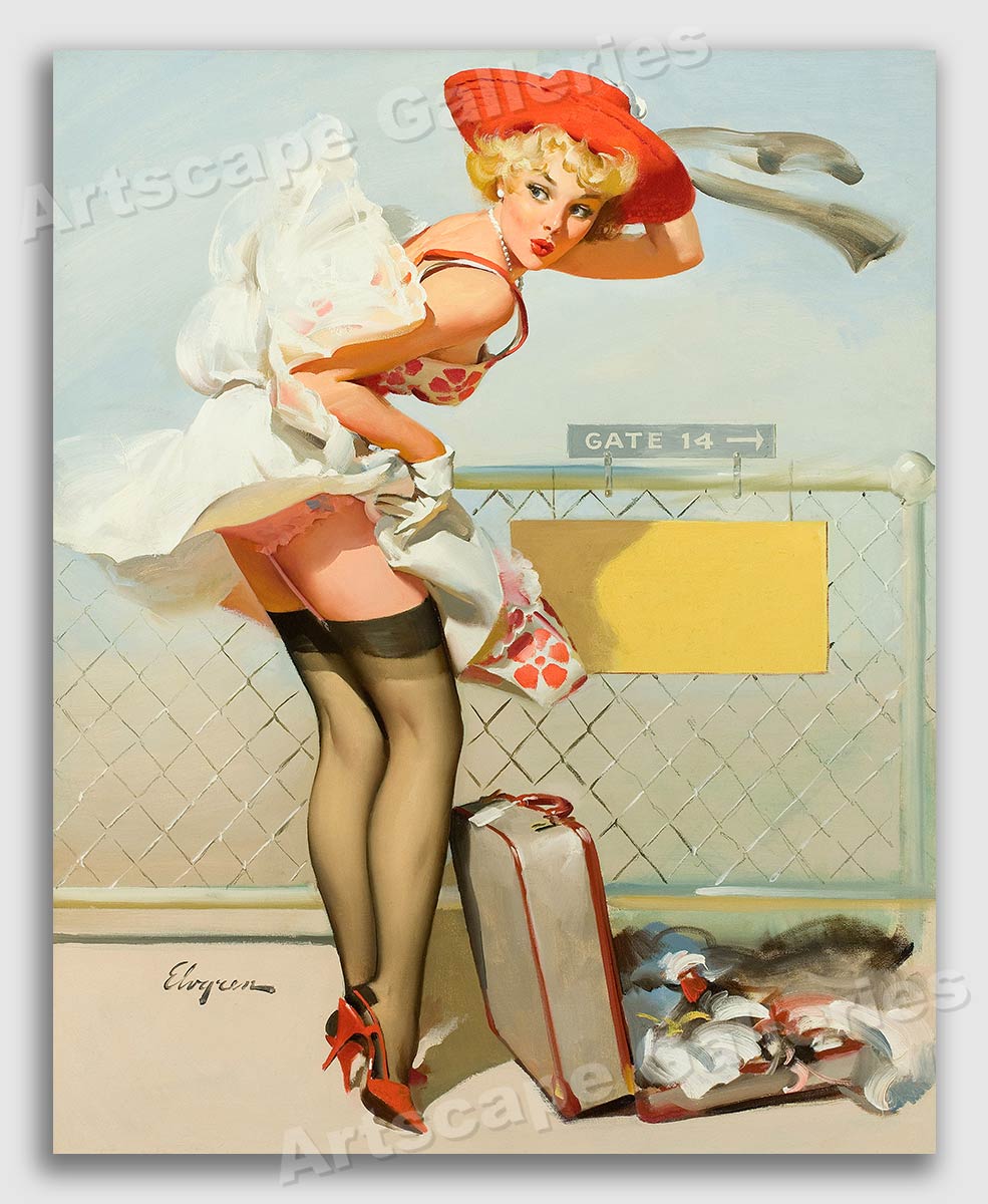 1960's Elvgren Pin-Up Poster "Up in the Air" Airport Runway - 24x30