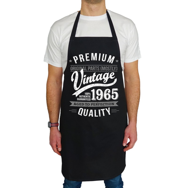 1965 Vintage Year - Aged To Perfection - 60th Birthday Gift | Present for Men Apron Black