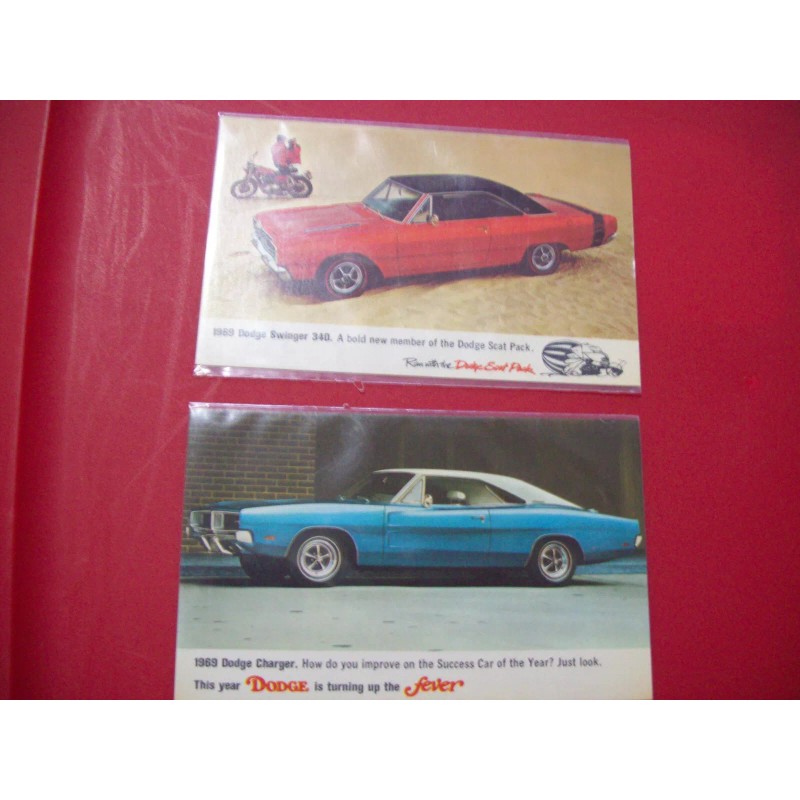 1969 DODGE CHARGER AND SWINGER 340 POSTCARDS FROM SWARTZ MOTORS DOVER N.J. NOS
