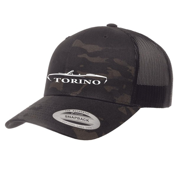 1970 1971 Ford Torino Convertible Fully Embroidered Yupoong 6606 Snapback Trucker Fitted Cap Multicam Black