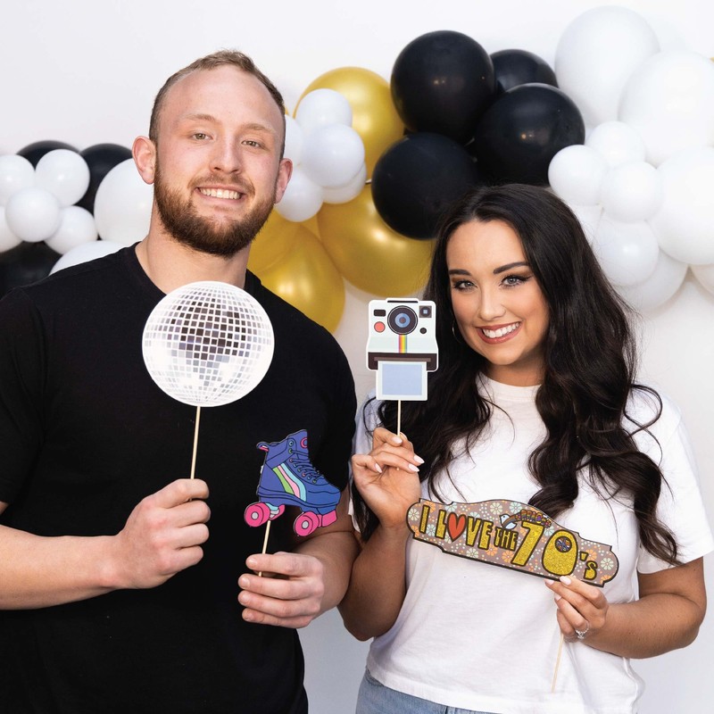 70s Photo Booth Props - 41-pc Disco Photo Booth Kit with 8 x 10-Inch Sign, 60 Adhesive Pads, 45 Sticks - Disco Photo Booth Props - 70's Party Props - 70s Decorations