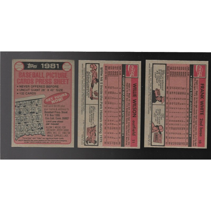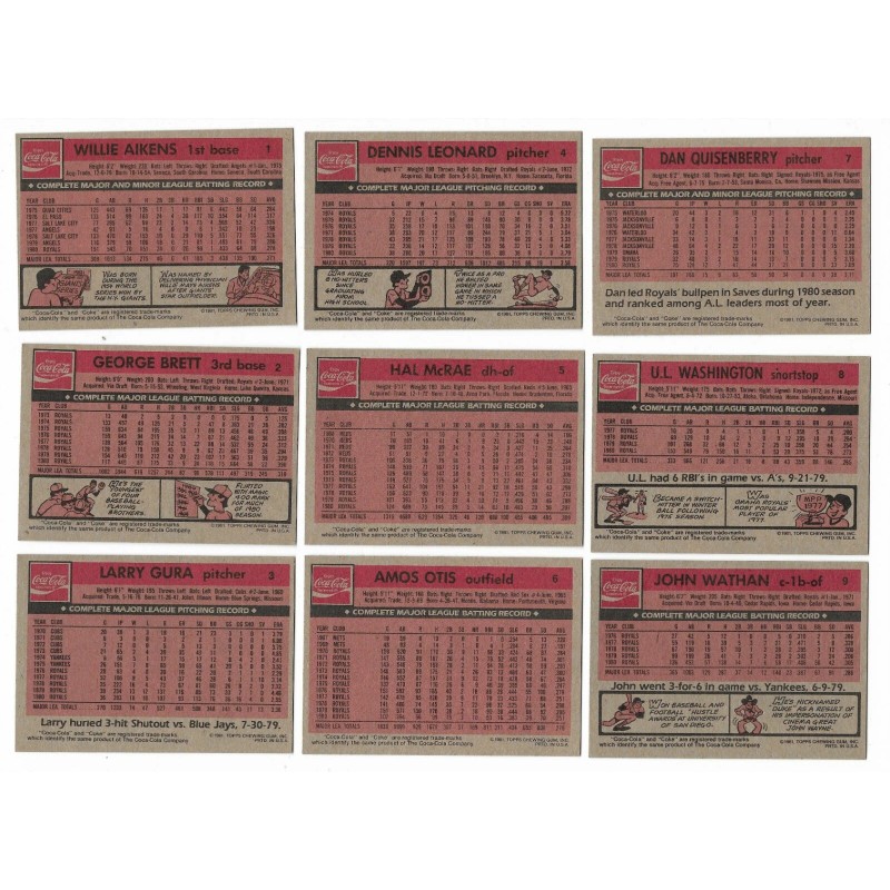 1981 TOPPS COCA-COLA KANSAS CITY ROYALS TEAM SET (12) BRETT 1981 AL CHAMPS NM/MT