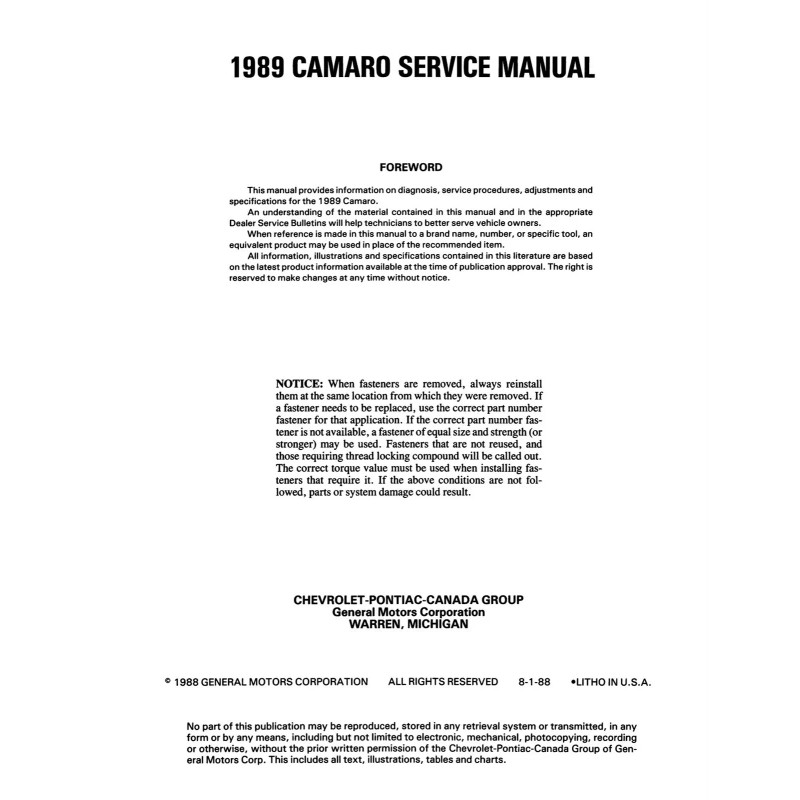 1989 Chevy Camaro Service Manual
